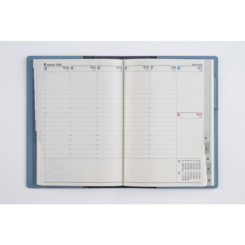 【月間予定表】カレンダーと同じ感覚で見ることができ、週ごとの予定が把握しやすいブロック式。平日の仕事の予定や、週末土日の予定をまとめて書きやすい月曜始まり。左端にはメモスペース、右下には前次月のカレンダーが付いています。 【週間予定表】時間管理がしやすいバーティカル式は、1日に複数の予定が入りやすい方におすすめ。月曜日から金曜日をたっぷり書き込める平日重視型の記入スペースです。