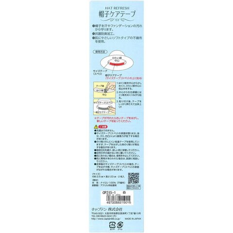 汗やファンデーションの汚れから大切な帽子を守る「帽子ケアテープ」です。