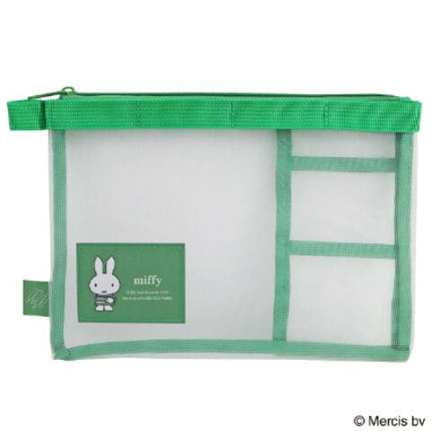 【送料無料】ミッフィー ステーショナリーケース グリーン メッシュ素材 内ポケット付 シンプル 北欧 ブルーナ かわいい クツワ - メール便発送