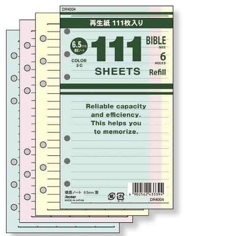 【1000円以上お買い上げで送料無料♪】レイメイ藤井 システム手帳 111 徳用リフィル バイブルサイズ 横罫 ミックス - メール便発送