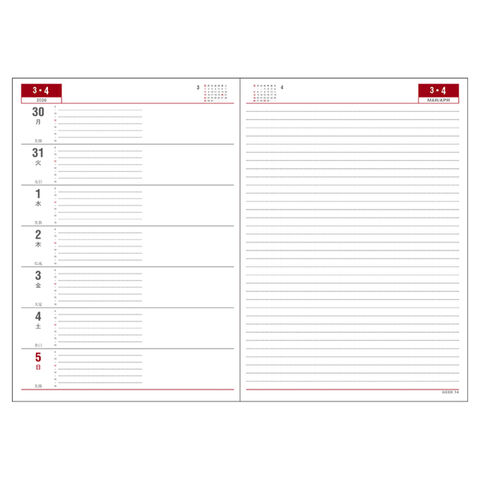 【レイアウト】1週間+横罫 ウィークリー 週間 レフト