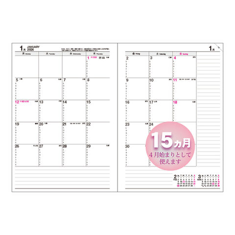 見開き1ヶ月ブロックタイプ15ヶ月版