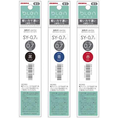 【1000円以上お買い上げで送料無料♪】【3色セット】 油性ボールペン 替芯 bLen ブレン 0.7mm 黒/青/赤インク SY-0.7 U ユー 濃く書ける ゼブラ - メール便発送