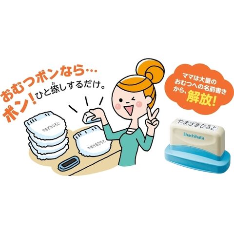 たくさんのおむつへの名前書きがスタンプで簡単にできる"おなまえスタンプ おむつポン"が登場!忙しい子育てママの日々の困りごとを手助けする応援アイテムです。おむつ以外の紙・プラスチック・金属・布・木などにもスタンプできます。