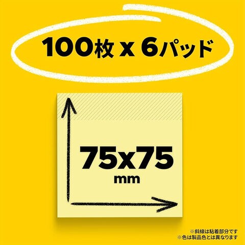 スリーエム ポストイット ノート 罫線入り 7.5×7.5cm 3色×2冊 計6冊セット 付箋 メモ オフィス 事務