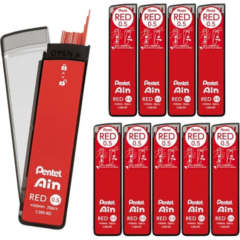 【送料無料】ぺんてる シャープ芯 ぺんてるアイン 0.5mm 赤芯 10個セット - メール便発送