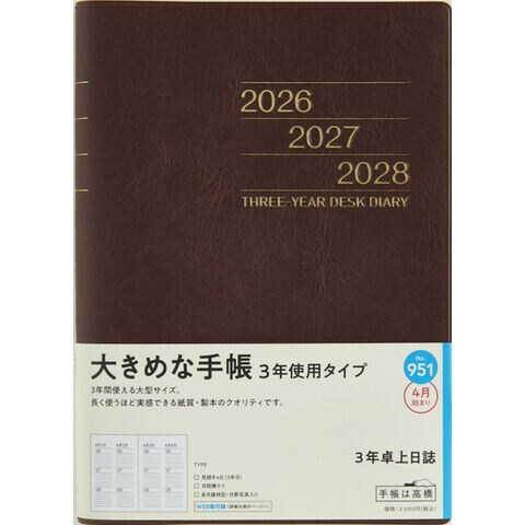 【送料無料】高橋書店 2026年 手帳・ダイアリー 4月始まり 【951】3年卓上日誌 A5 見開き4日3年分 茶 - メール便発送