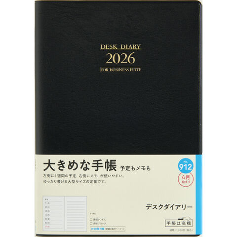 高橋書店 2026年 手帳・ダイアリー 3月始まり 【912】デスクダイアリー A5 1週間+メモ 黒