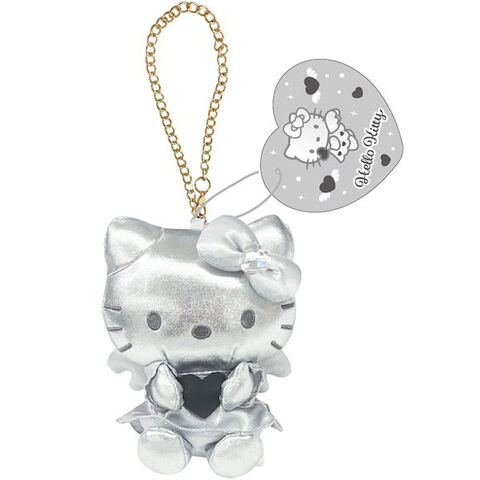 ハローキティ 合皮マスコットチャーム シルバー チェーン付 ハート型 キラキラジュエル モノトーン 大人かわいい NIC