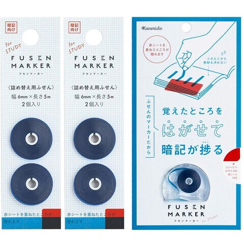 【送料無料】フセンマーカー STUDY ブルー A7赤シート付 リフィル2個セット - メール便発送