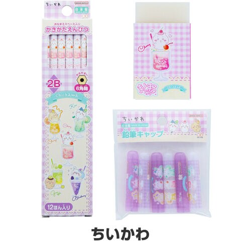 【送料無料】【文具3点セット】 ちいかわ かきかた鉛筆2B/消しゴム/キャップ 簡易ラッピング 2025年モデル 入学 進級 サンスター文具 - メール便発送