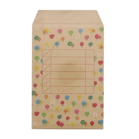色鉛筆で描いたイラストが楽しい月謝袋。クラフト紙を使用しているので、丈夫でお金も透けません。お札を折らずに入れられるサイズです。