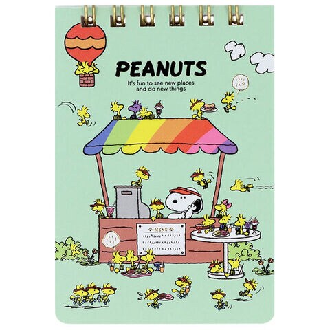 スヌーピー ウッドストック Wリングメモ A7 カフェスタンド 方眼罫 80枚 ピーナッツ かわいい 日本製 サンスター文具