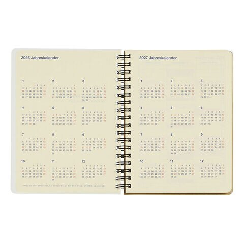 表紙を開くと、中扉、イヤーカレンダー、イヤースケジュール、マンスリー、方眼メモページ、クリアポケットが続きます。
