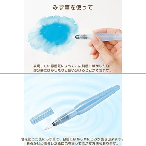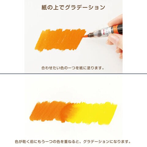 みずみずしく鮮やかな発色で、毛筆タイプならではの自由な表現ができるカラー筆。