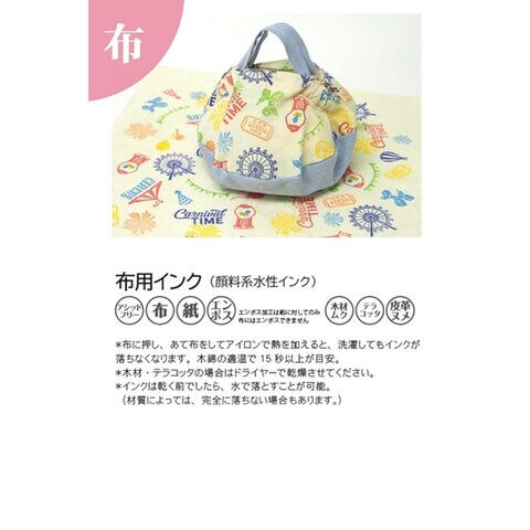 ・乾燥時間: 加熱15秒以上(アイロン、ドライヤー、エンボスヒーター) 素材、気候などの条件やインクカラーにより異なります。 ※あて布をすることをお勧めします。