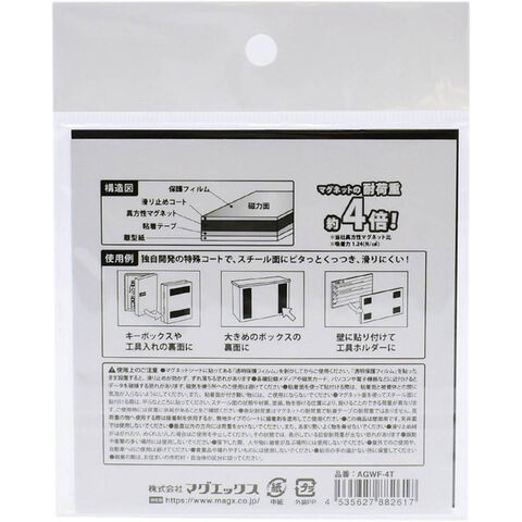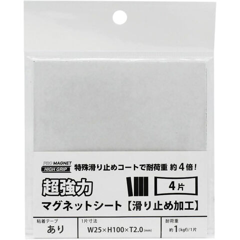 【1000円以上お買い上げで送料無料♪】マグエック 強力マグネットシート 滑り止め加工 粘着テープ付き 100×25mm カットタイプ 4片 AGWF-4T - メール便発送