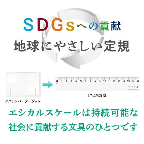 超透明アクリルの定規 エシカルスケール 17cm 高透明 SDGs エコ シンプル 日本製 共栄プラスチック