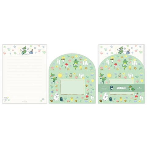 ムーミン レターセット Let's have a Happy Journey 冒険へ出かけよう グリーン スナフキン 箔押し 便箋 封筒 かわいい
