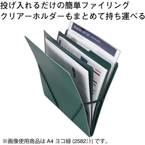※最大約20枚(クリアーホルダー1枚にコピー用紙10枚収納した場合)収納可能。伸縮性のある平ゴムで収納物をホールドするので、紙