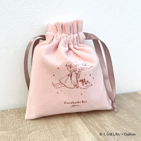 ベロア 巾着 くらはしれい ピンク サテンリボン 小物入れ 箔押し 豪華 上品 レトロ かわいい 学研ステイフル