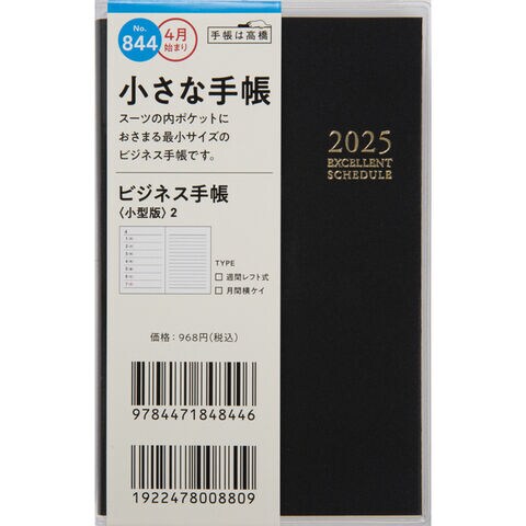 高橋書店 2025年 手帳・ダイアリー 4月始まり 844 ビジネス手帳 小型版2 月曜始まり ウィークリー 黒 手帳判