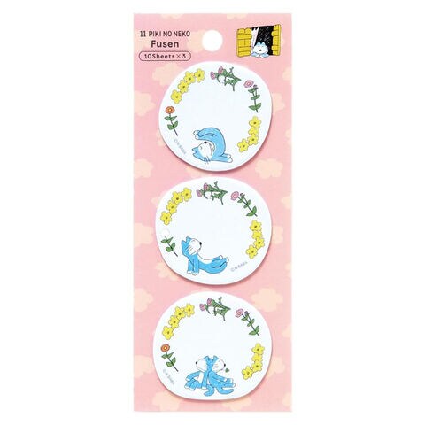 【1000円以上お買い上げで送料無料♪】11ぴきのねこ ダイカット付箋セット ピンク 3柄×各10枚 メモ 花 猫 人気絵本 かわいい 学研ステイフル - メール便発送