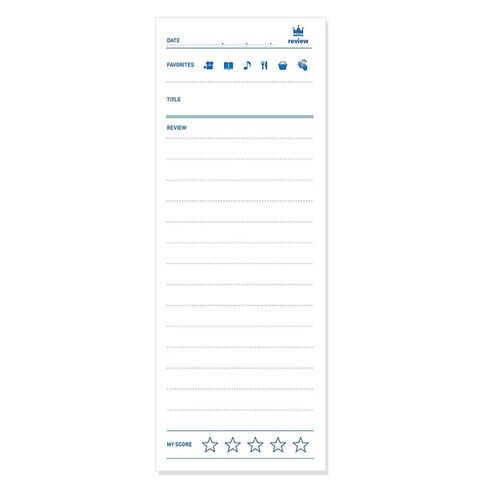 オリジナルの手帳を作る、カスタムシリーズのアクセサリー。レビューふせんは、映画や音楽・グルメ・本などの感想を記録することができます。パンフレットに貼りつけておいたり、日記に貼りつけたり、シーンに合わせてお使いいただけます。【サイズ】本体:147x55mm【枚数】30枚