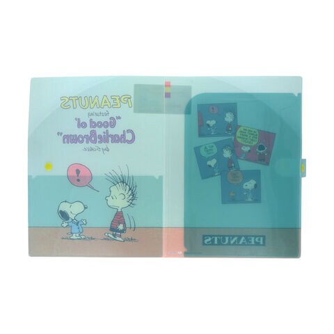 【1000円以上お買い上げで送料無料♪】スヌーピー ボタン付きクリアファイル A4 4ポケット ライトブルー PEANUTS Favorite Story かわいい サンスター文具 - メール便発送