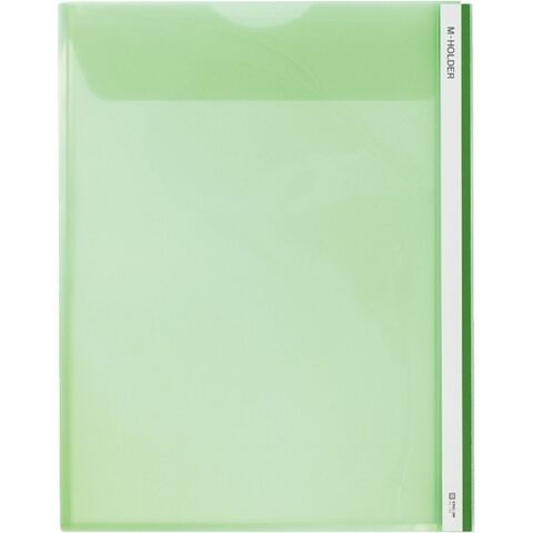 サンプル添付にも便利なマチとフタがついたクリアホルダー。書類の一時保管や1件別整理にも便利。書類脱落を防止し、携帯時にも安心。カラフルなカラー透明PP製なので、収納した資料の確認が容易なうえ、色による分類が可能です。ボックスファイルとの併用で一段と便利に使用できます。●規格:A4タテ●本体色:緑●外形寸法:縦303×横236×収納幅10mm●マチ付き●フタ付き●見出し紙付き●材質:本体=ポリプロピレン・見出し紙=紙