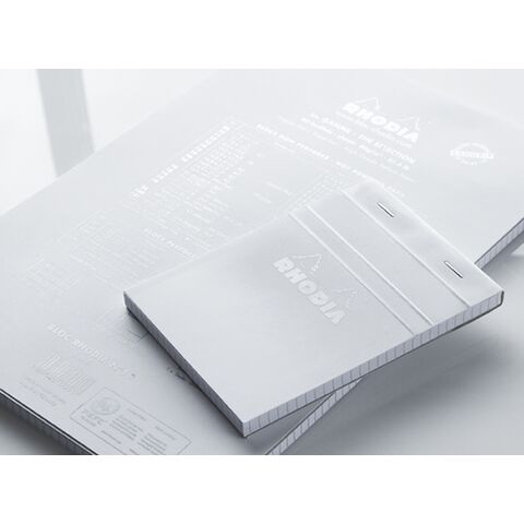 オレンジとブラックが定番のブロックロディアに、クリーンで清々しいホワイトが登場しました。滑らかで反射のない用紙は、鉛筆にはやわらかいタッチを、ボールペンにはあざやかな発色を、万年筆にはインクにじみの無いスムースな書き味を保証します。