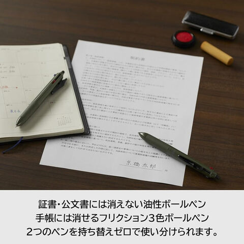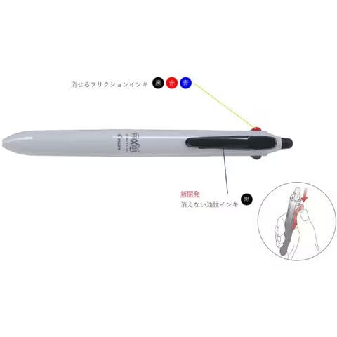 「消せる」フリクションインキと「消えない」油性インキを1本に搭載した、