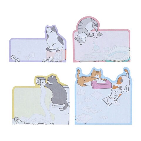 いたずらし隊!ねこふせん たくさん散らかし隊 4柄×各15枚 猫 ネコ にゃんこ 付箋 ダイカット かわいい サンスター文具