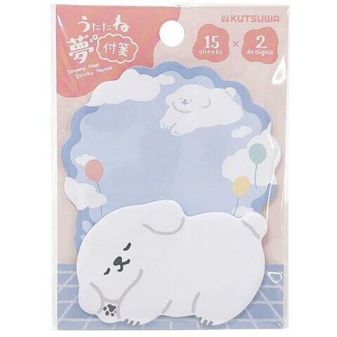 【1000円以上お買い上げで送料無料♪】うたたね夢付箋 マルチーズ 2柄×各15枚 ダイカット メモ 犬 イヌ 動物 アニマル 寝姿 かわいい クツワ - メール便発送