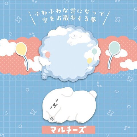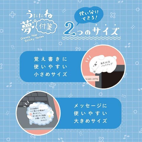 かわいい動物の寝姿とふわふわした夢の形、2柄が楽しい「付箋」です。