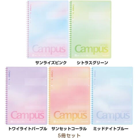 【5冊セット】 限定 キャンパス ソフトリングノート ポジティブ&リラックス セミB5 B罫/6mm ドット入 40枚 コクヨ