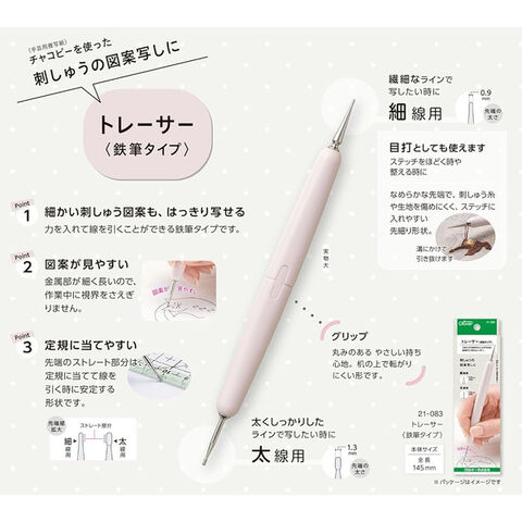 クロバー トレーサー 鉄筆タイプ ツイン 細線/太線 刺しゅう 図案 しるし付け 目打ち 裁縫道具 手芸 作品 手作り 趣味