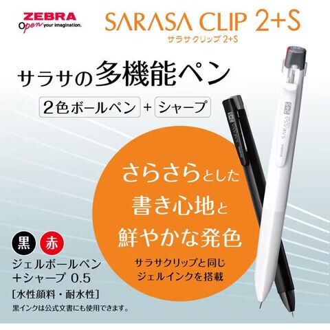 【1000円以上お買い上げで送料無料♪】多機能ボールペン サラサクリップ 2+S 0.4mm 黒 2色ジェルインク 黒/赤 シャープ/0.5mm スリム 軽量 ゼブラ - メール便発送
