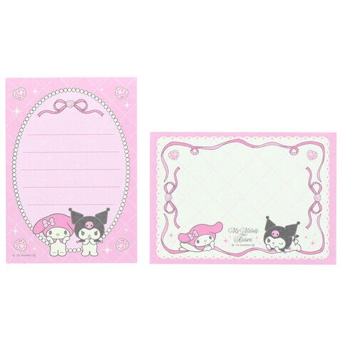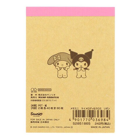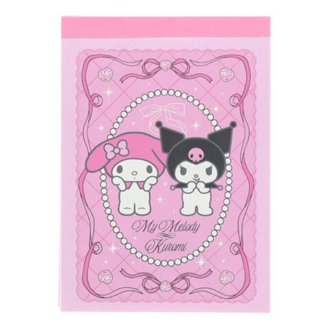 【1000円以上お買い上げで送料無料♪】マイメロディ&クロミ メモミニ リボン 2柄×各40枚 ピンク×黒 ハート PET表紙 伝言 周年 かわいい サンスター文具 - メール便発送