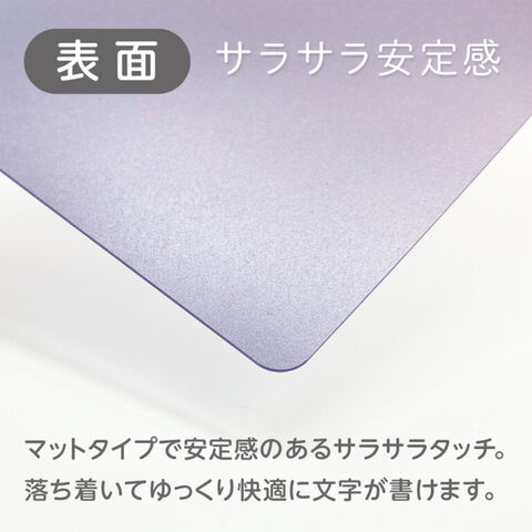 サラサラ安定感・ツヤツヤ爽快感、ふたつの書き心地がスウィッチできる「下敷き」です。