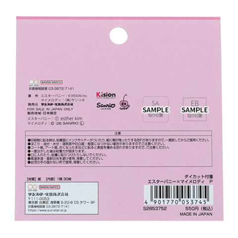 エスターバニー×マイメロディ ダイカット付箋 ピンク 30枚入 ウサギ コラボ POP ガーリー かわいい サンスター文具