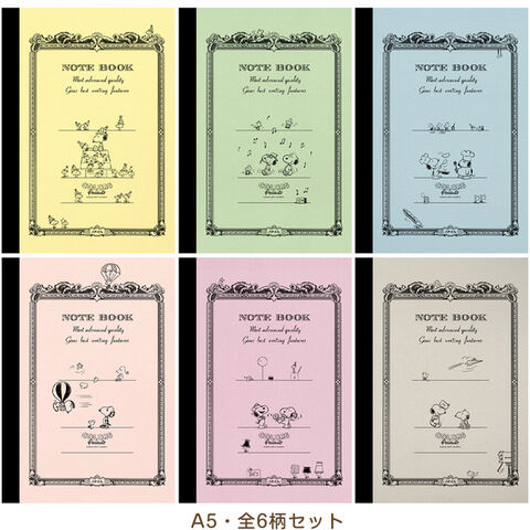 【送料無料】【6種セット】 スヌーピー PEANUTSデザイン 第2弾 CDノート A5 きょうだい 兄弟 7mm横罫 かわいい アピカ 日本ノート - メール便発送
