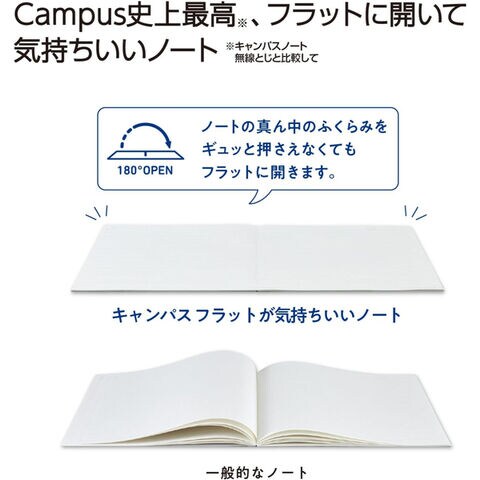 ノートの真ん中のふくらみをギュッと押さえなくてもフラットに開きます。●スマホで撮影する際、ページを手で押さえる必要がありません。また、真ん中のふくらみによる影やゆがみがなく、キレイに撮影出来ます。●ページの端から端までストレスなく広々と書き込めます●左右のページを横断して見開きでノートを使用することが出来ます。●定規を使用する際に、ノートの真ん中のふくらみに引っかかることがありません。●左右のページを横断する見開きドット罫を採用しています。●タイマー学習等に便利なタイム記入欄があります。●スマホでキレイに撮影できるので、ノート管理&編集アプリ「CarryCampus」やノート共有アプリ「Clearnote」との相性もよく、効率的に勉強が出来ます。