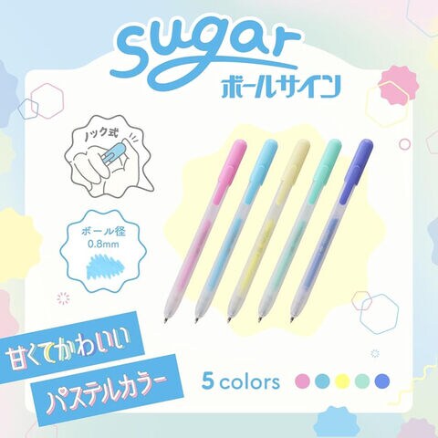 ボールサイン 0.8mm シュガーノック 5色セット パステル 水性 ゲルインキボールペン かわいい サクラクレパス