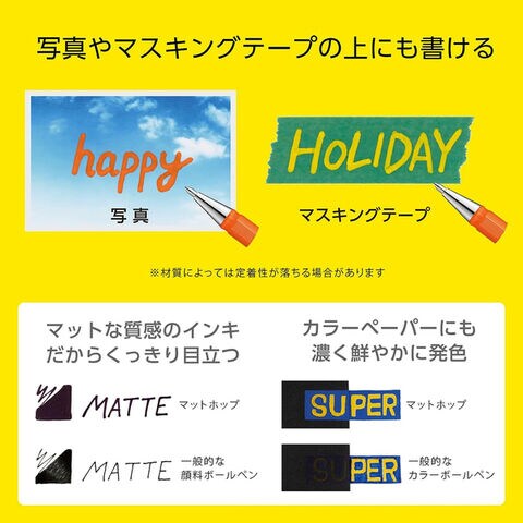 写真、マスキングテープ、お菓子の紙箱などにも濃く鮮やかに描くことができます。