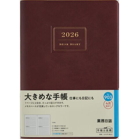 【送料無料】高橋書店 2026年 手帳・ダイアリー 4月始まり 【903】業務日誌 A5 見開き4日 エンジ - メール便発送