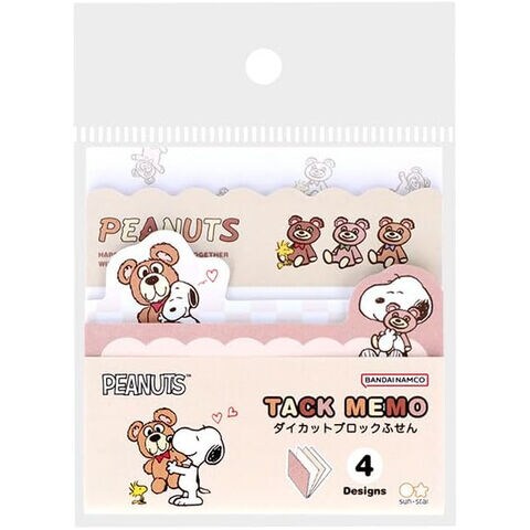 スヌーピー&カドリーベアーズ ダイカットブロック付箋 ブラウン 4柄×各15枚 テディベア ピーナッツ かわいい