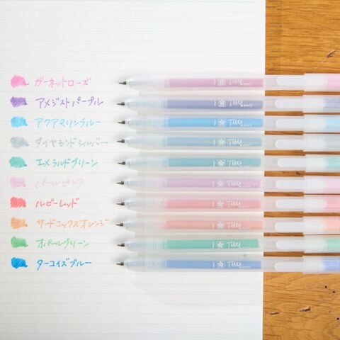 水性インキと油性インキ両方の特長を併せ持つゲルインキと、ペン先部分(チップ)の工夫によってなめらかな書き味を実現。