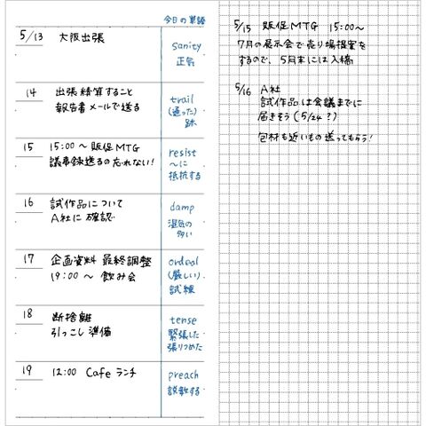 月間スケジュールを「インデックス」として、バレットジャーナルにも使える「ウィークリー」です。