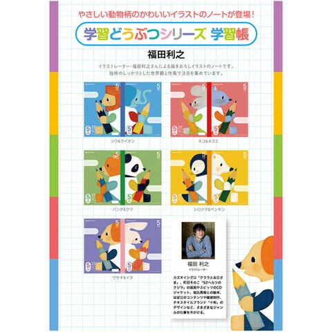 やさしい動物柄のノート「学習どうぶつシリーズ」です。
